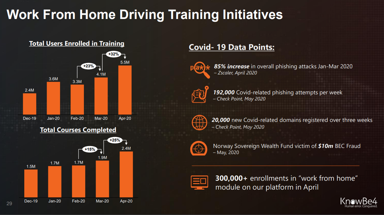We did a quick intermediate analysis of the training and KnowBe4 customers immediately rolled out this module for three hundred thousand employees in just the month of April.