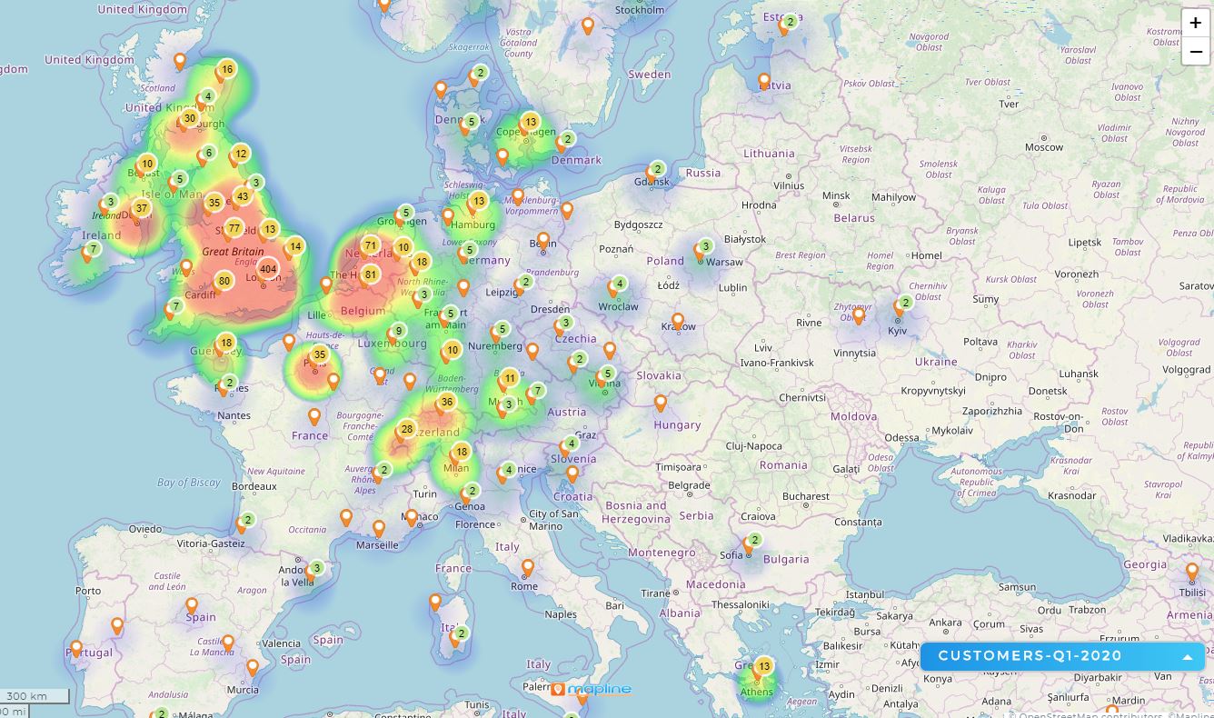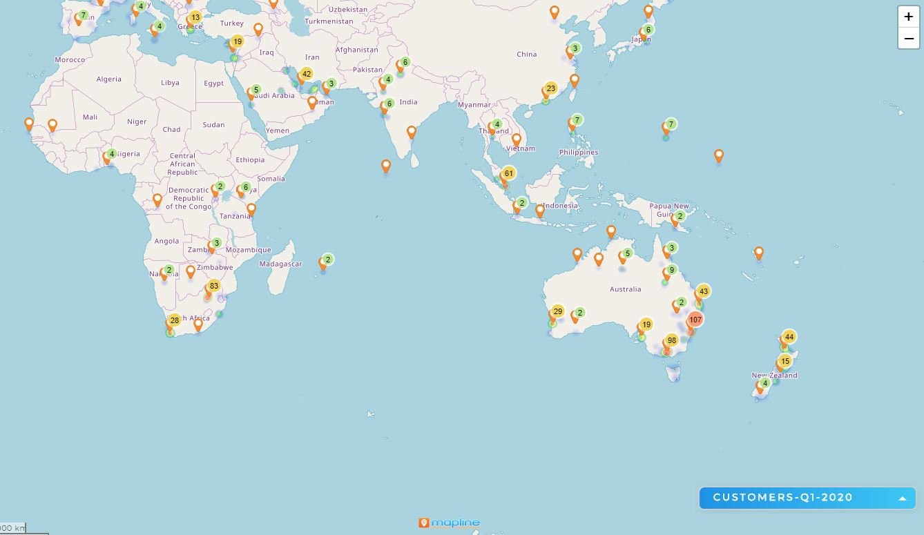 Every once in a while it's just fun to use some mapping software and see the geographic picture of where your customers are. We have tens of thousands or organizations using KnowBe4 all over the world, but the highest density is in the U.S. Here is how it looks in Feb Q1, 2020, after we just broke the 31,000 customer record. If you click on the picture, a larger file with more detail shows up. You can also compare to the map with just 20,000 customers here.